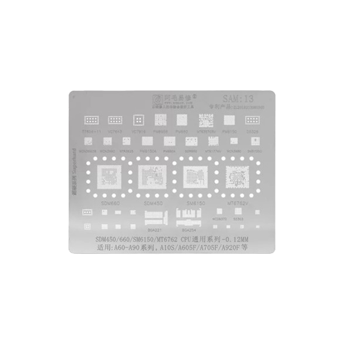 اگر دنبال یه شابلون باکیفیت برای ریبال آیسیهای گوشیهای سامسونگ هستی، شابلون چند منظوره AMAOE SAM:13 دقیقاً همونه! این شابلون توسط برند معتبر آموئی طراحی شده و با پشتیبانی از مدلهای معروف سامسونگ یکی از گزینههای بیرقیب برای تعمیرکارای حرفهایه. از CPU گرفته تا آیسی وایفای، تغذیه و بیسباند، این شابلون همه رو ساپورت میکنه.